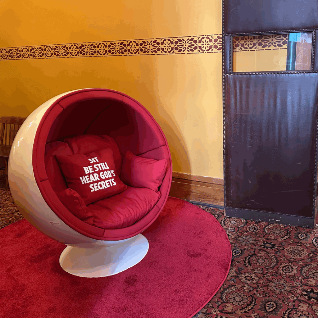 Designed by acclaimed multi-disciplinary artist Shabazz Larkin and narrated by renowned historian Dr. Jemar Tisby, this traveling chair invites visitors to sit, be still, and hear untold gospel hope stories — featuring lesser-known Black Christian leaders whose faith fueled movements for justice. Three audio stories describe the contributions of Anna Murray Douglass, Prathia Hall, and The Savannah Colloquy.