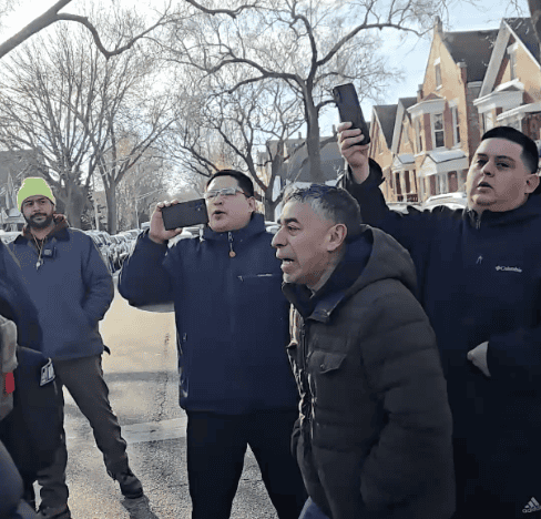 Chicago police provided crowd control, but no organized protest was underway — this was an organic, real-time response from neighbors to an unannounced enforcement action.